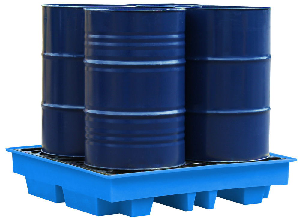 As bacias de retenção de polietileno (PE) para bidões são uma solução ideal para a prevenção de derrames cuja origem provenha de válvulas ou torneiras mal fechadas ou choques acidentais com empilhadores.